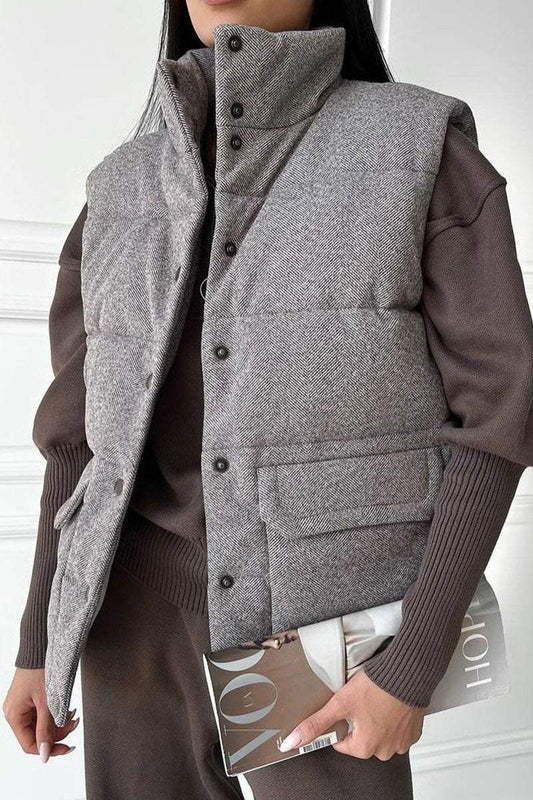 Lässige, einfarbige, ärmellose Jacke mit Taschen