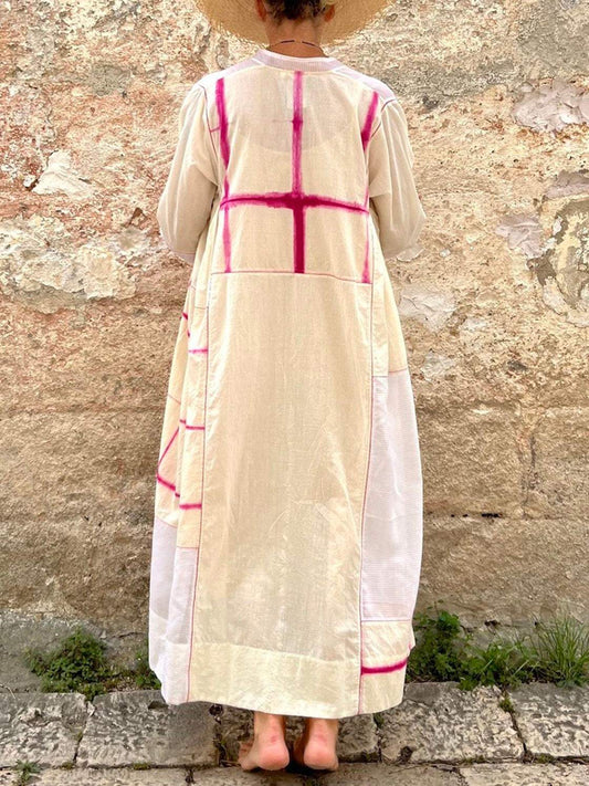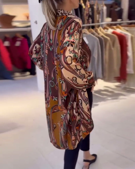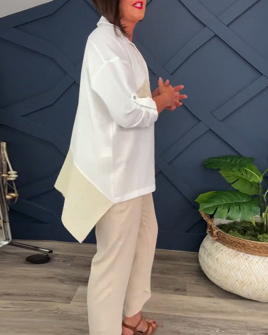 Uregelmessig lappeteppeskjorte med lang ermet lomme