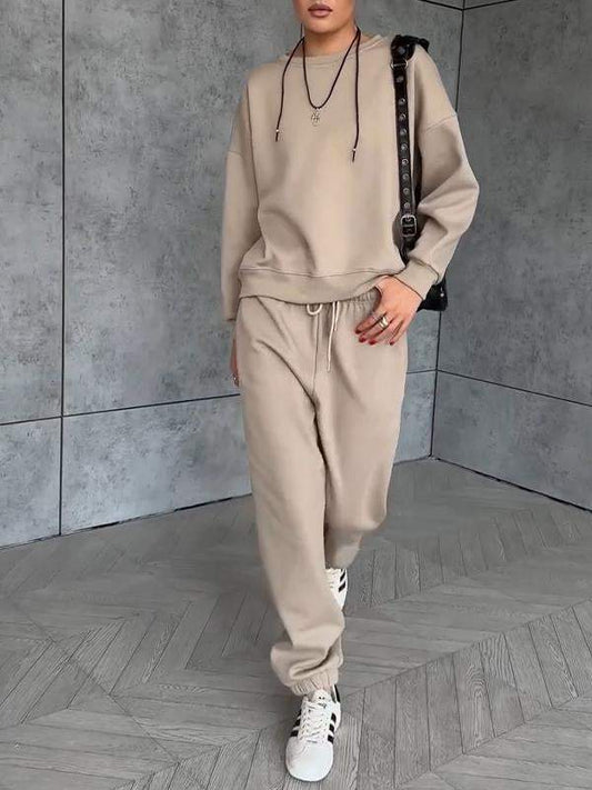 Kvinners rundhals ensfarget langermet sportsdress i to deler