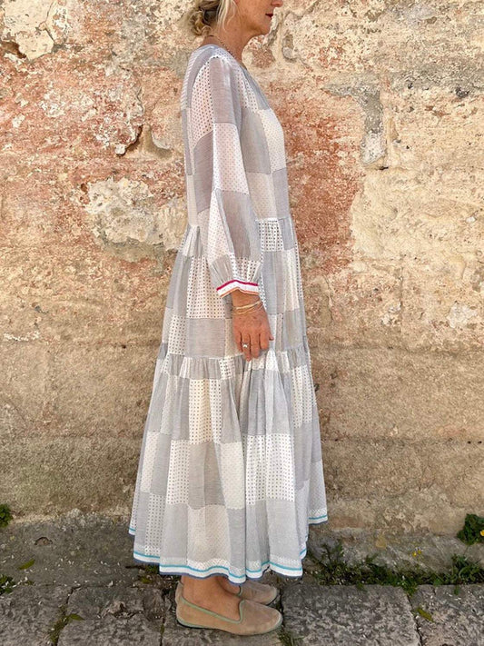 Kvinners rundhals langermet sjal Casual Retro-drakt