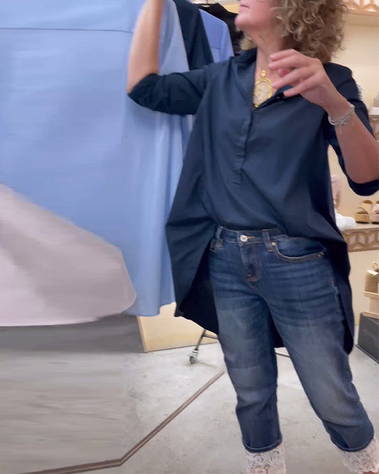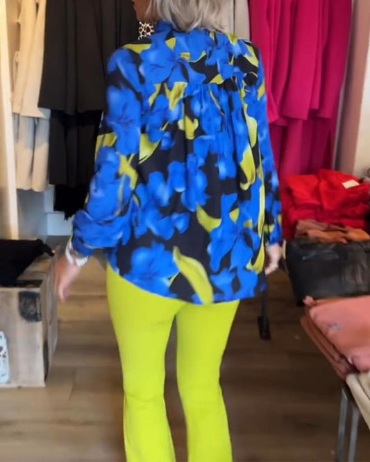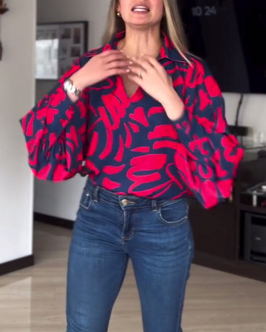 Uformell topp med V-hals og lange ermer med hjertetrykk