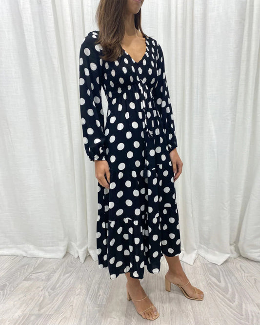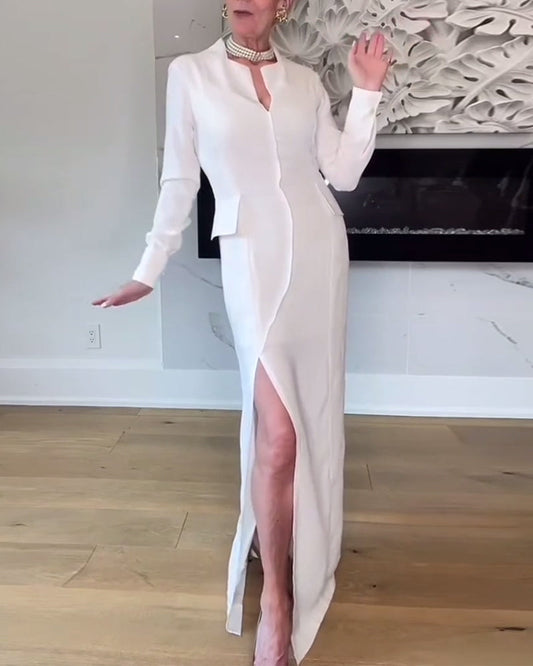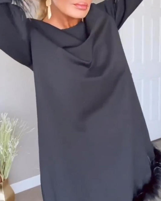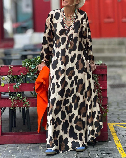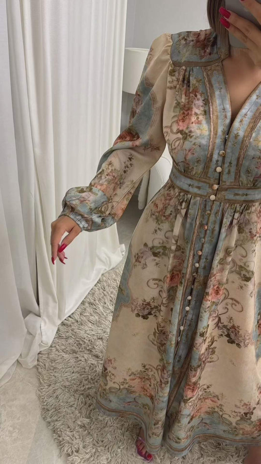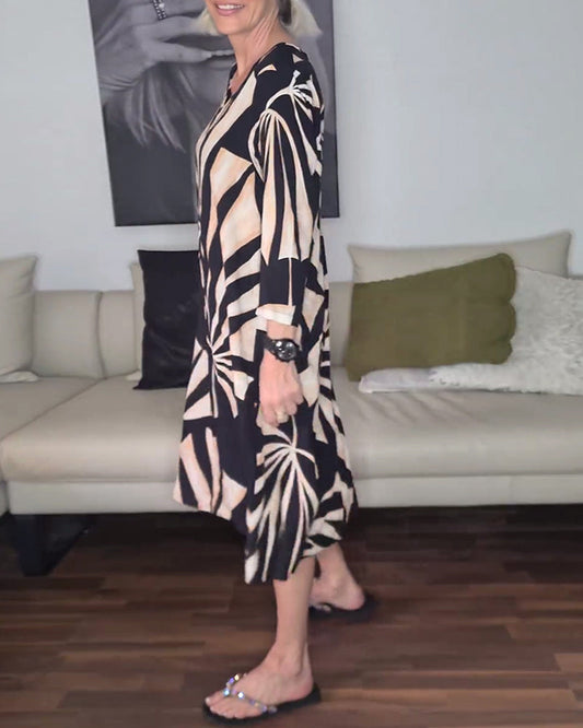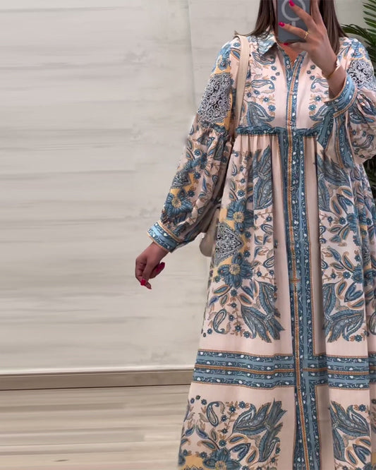 Fasjonabel, fargerik, langermet kjole med blomstertrykk