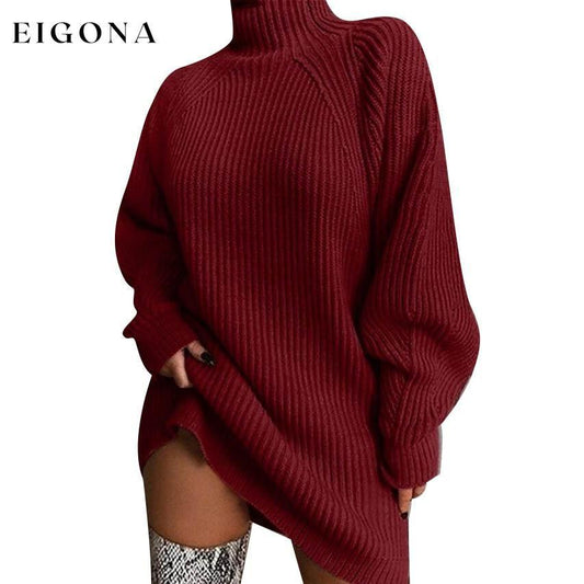 Damekjole Genser Kjole Strikket Langermet Løs Genser Cardigans Turtleneck