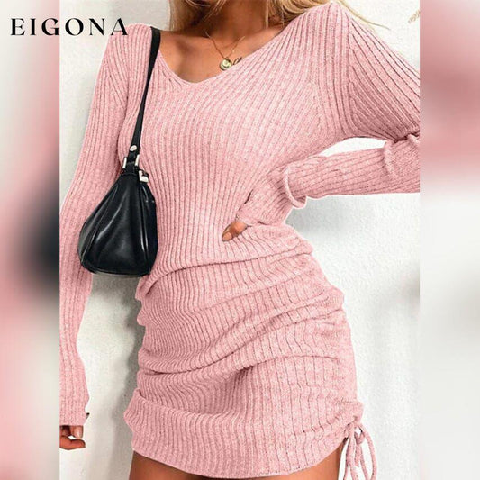 Langermet kjole for kvinner med V-hals Fritidskjoler Soid Color Stripe Bodycon Dress Plus Size Lang kjole