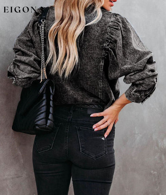 Svart puffermet Button-Up denimjakke