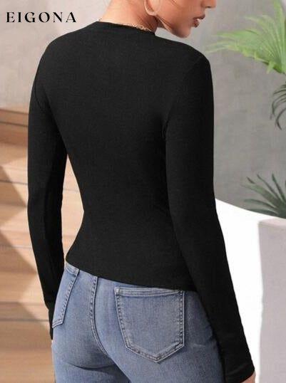 U-formet krage Y2K uregelmessig volang slank langermet crop topp