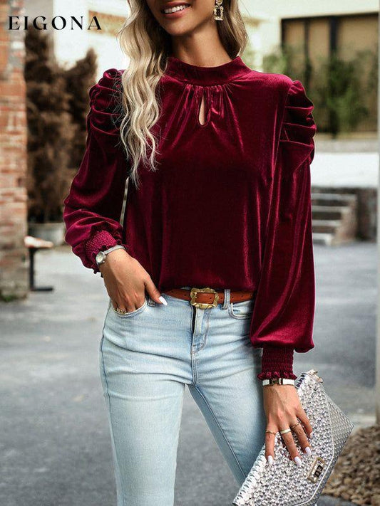 Burgund paljett Mock Neck Bubble Sleeve Topp