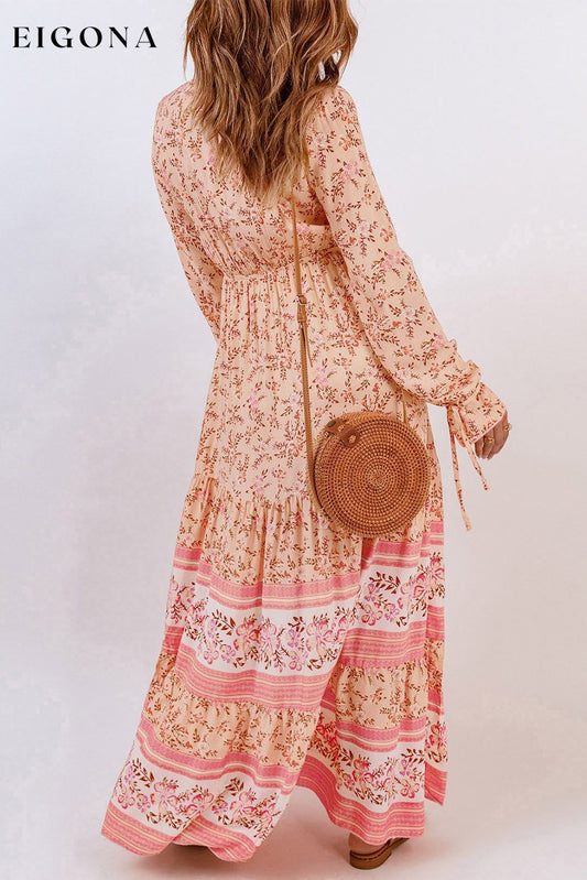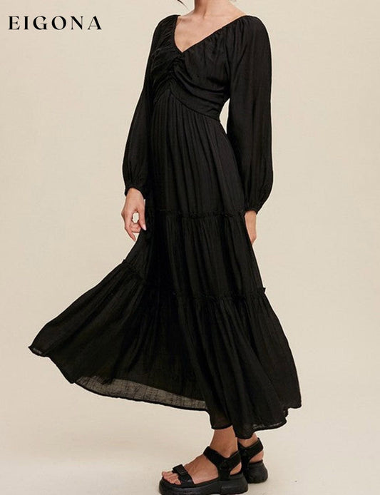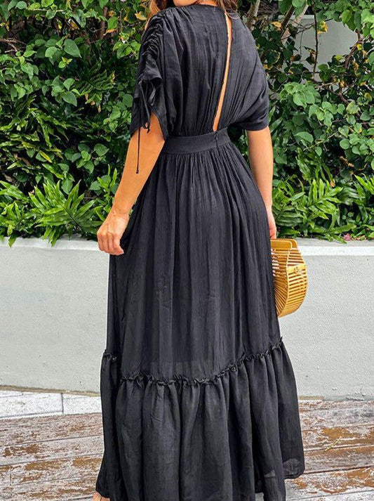 Svart V-hals bowknot Cutout Frill Tiered Maxi Dress
