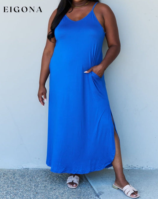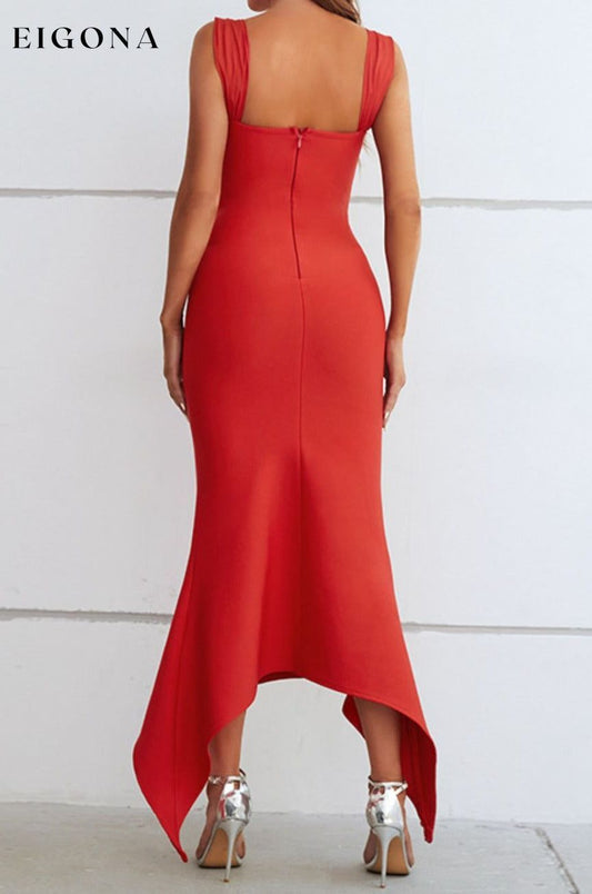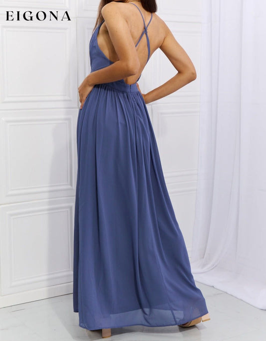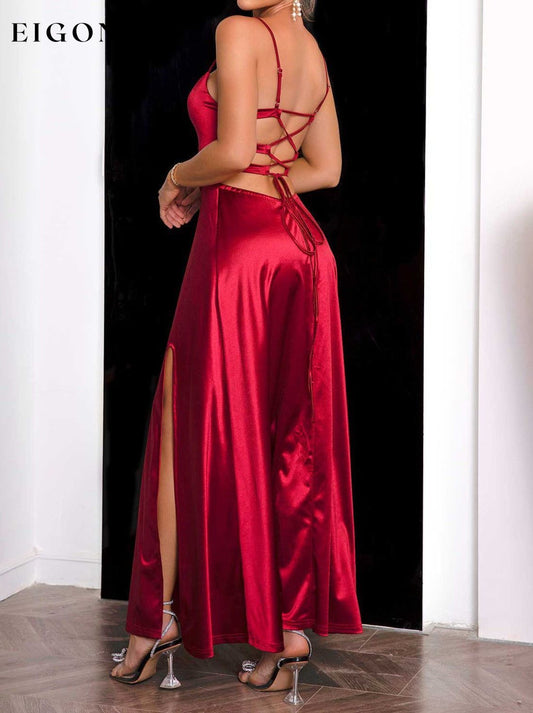 Spaghetti Strap Lace-Up Back Split Maxi Dress
