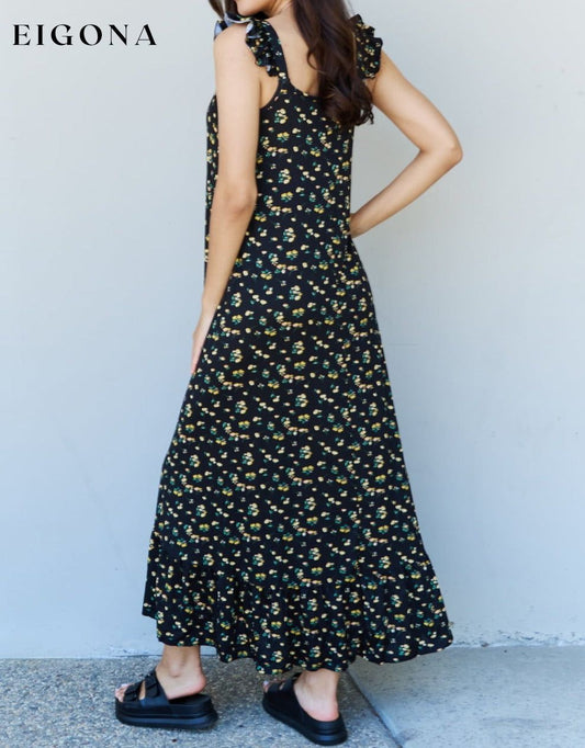 Ruffle Floral Maxi Dress i Black Yellow Floral