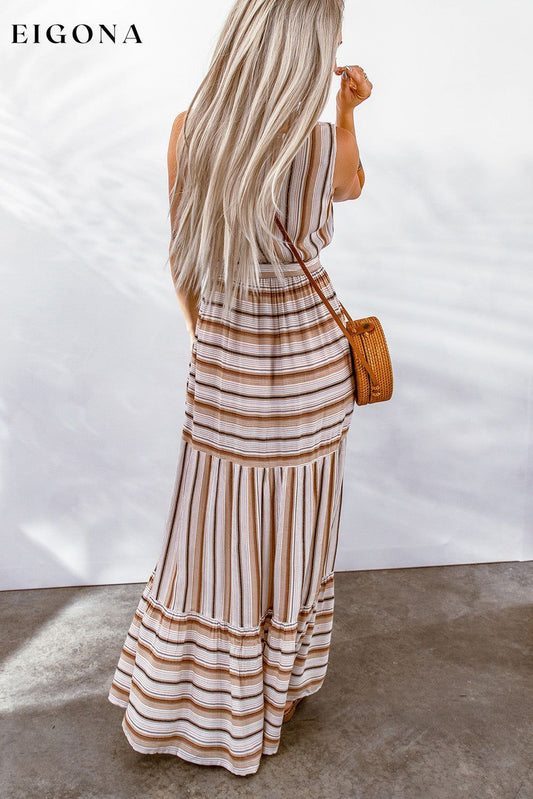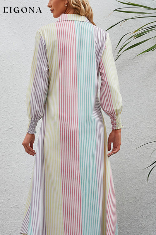 Rainbow Stripe Button-Up Maxi skjortekjole