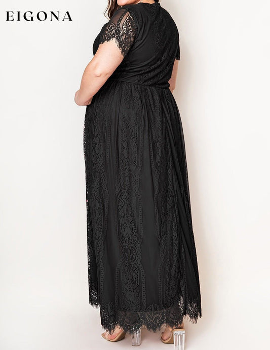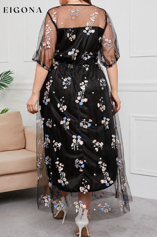 Plus Size Layered Mesh Maxi-kjole med rund hals