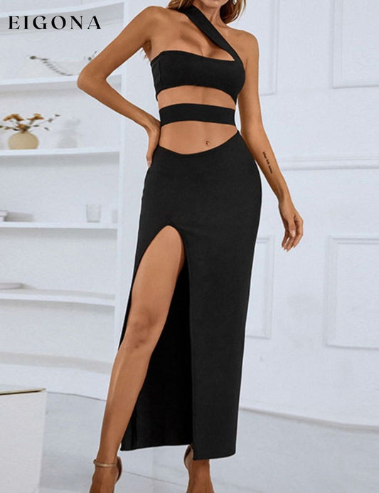 En-skulder Sexy Cutout Front Split Maxi Dress