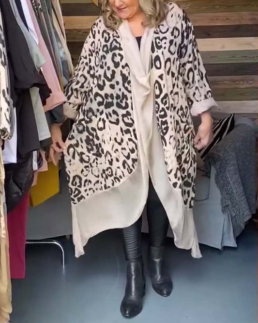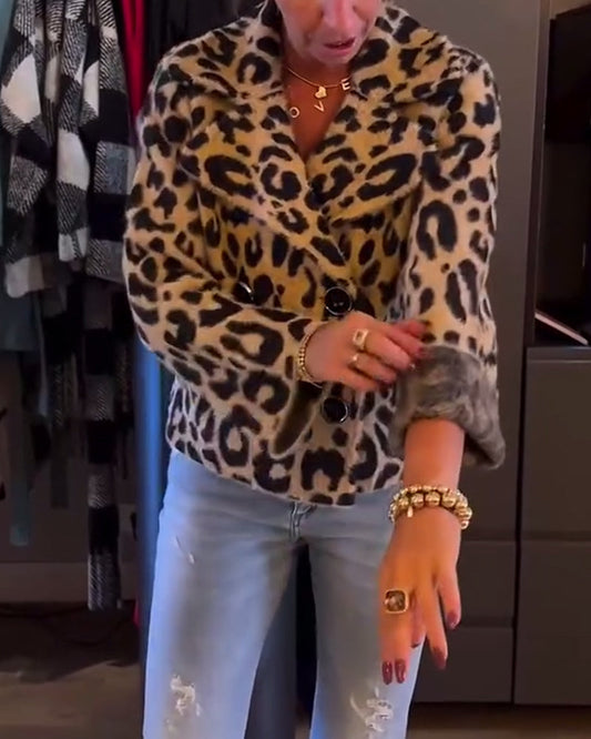 Modischer Mantel mit Reversknopf und Leopardenmuster