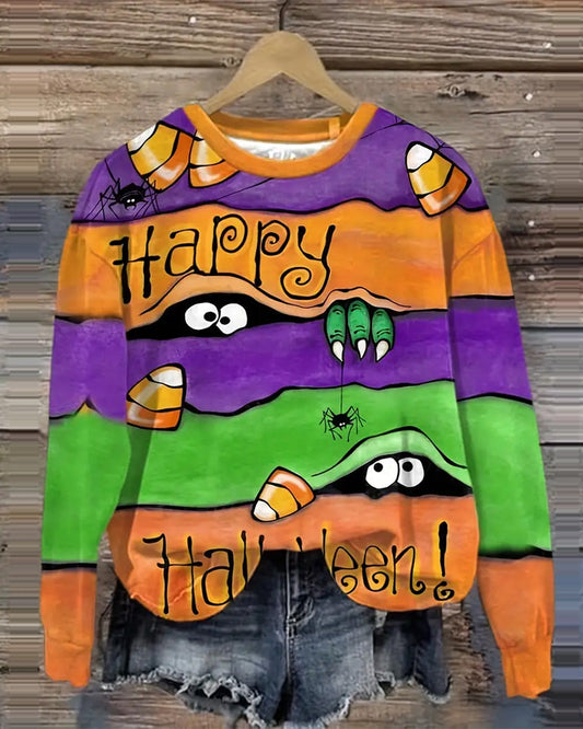 Gemütliches Sweatshirt mit Monster- und Spinnen-Print in Übergröße