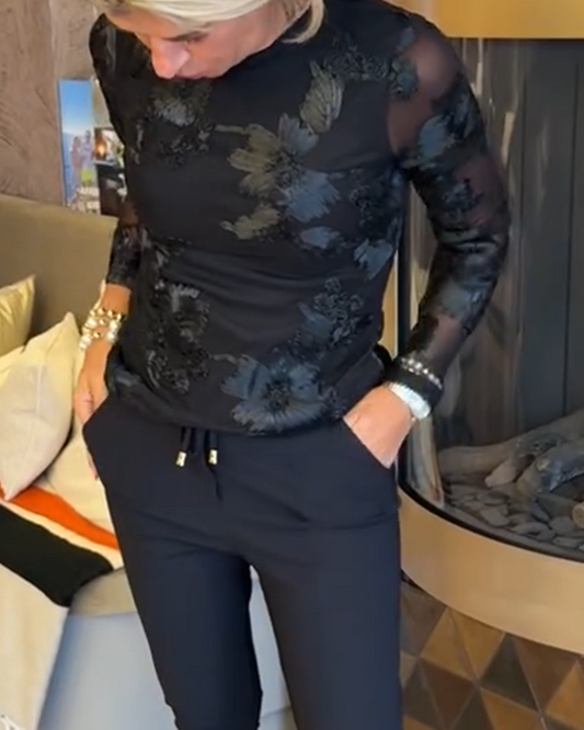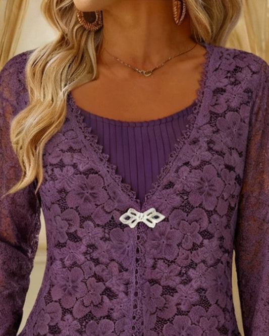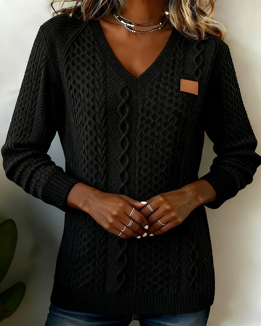 Leather Label V-Neck Long-Sleeve Sweatshirt