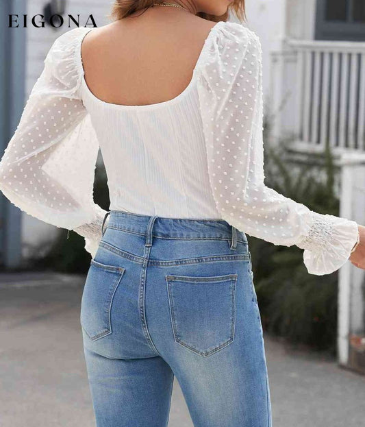Swiss Dot Volangsleeve Bodysuit med firkantet hals
