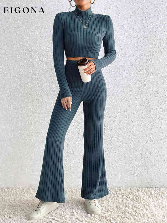 Ribbet mock hals beskåret genser & høy midje bukser sett