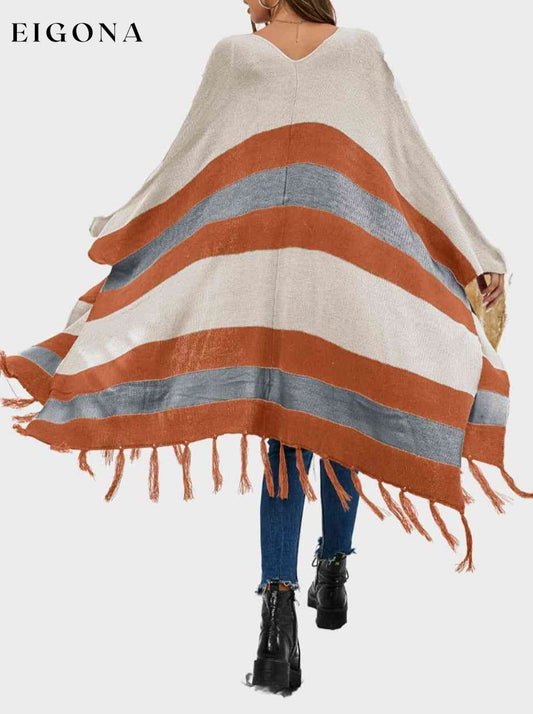 Stripet cardigan med åpen front frynser