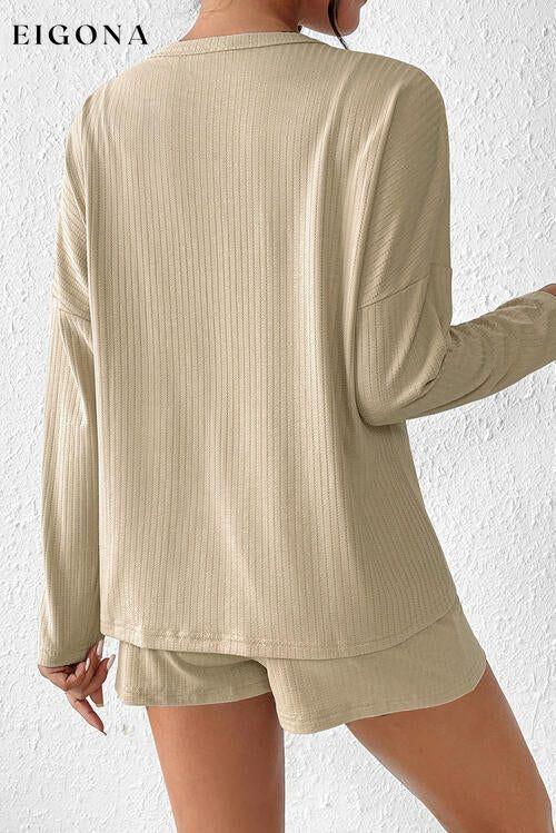 Ribbet button-up topp og shortssett