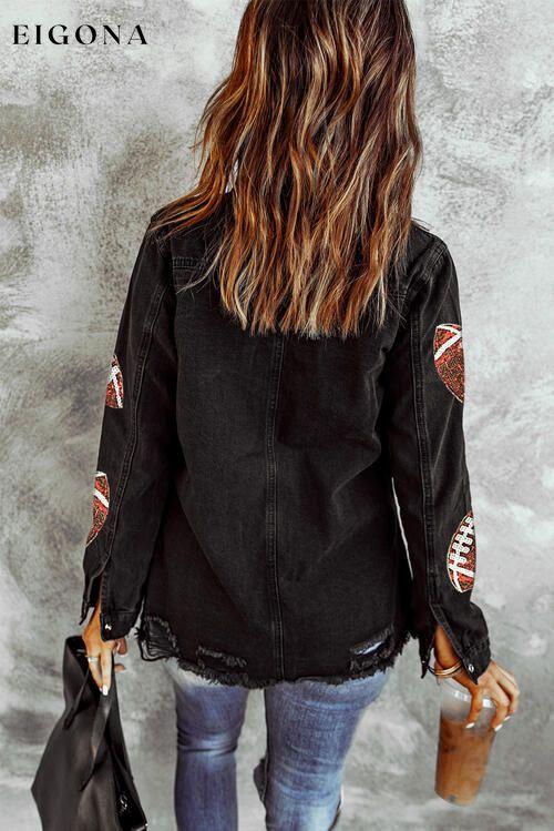 Paljett Fotball Patch Snap Down Distressed jakke