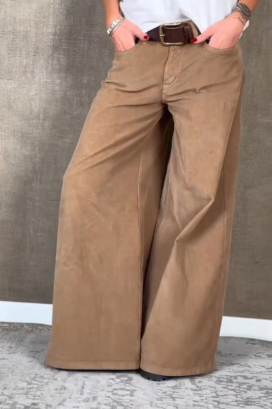 Lässige, einfarbige Cordhose mit weitem Bein für Damen