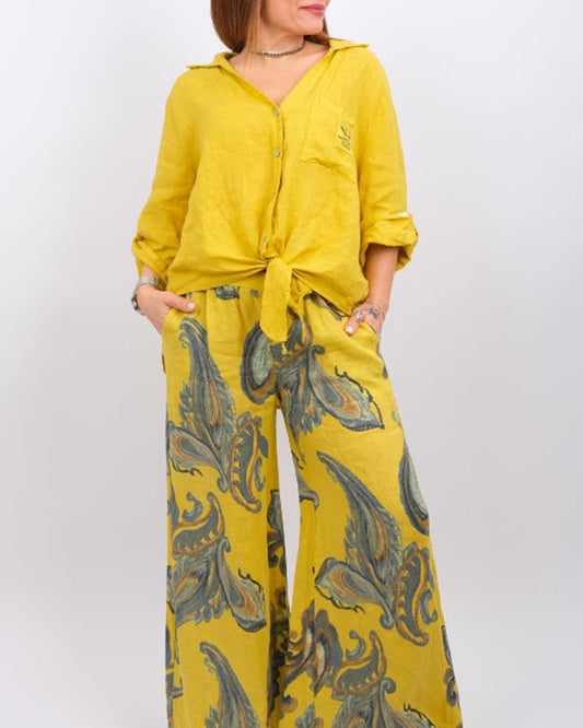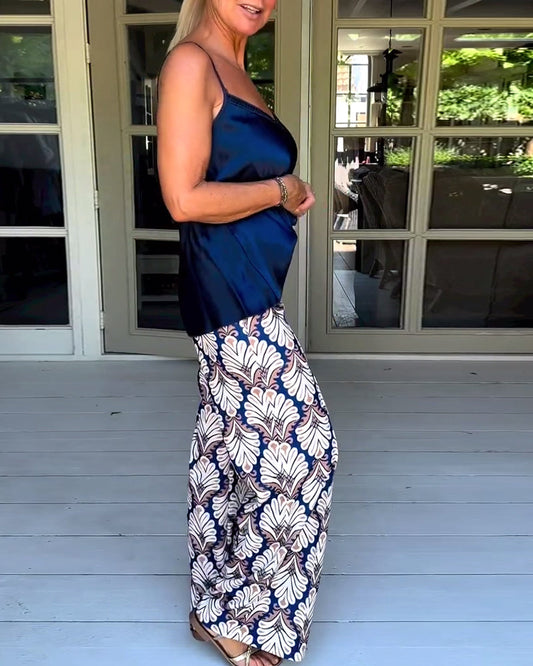 Løse bukser med vidde ben med trykk
