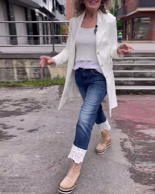 Casual jeans med blonderpanel