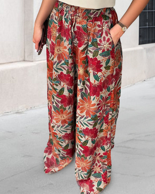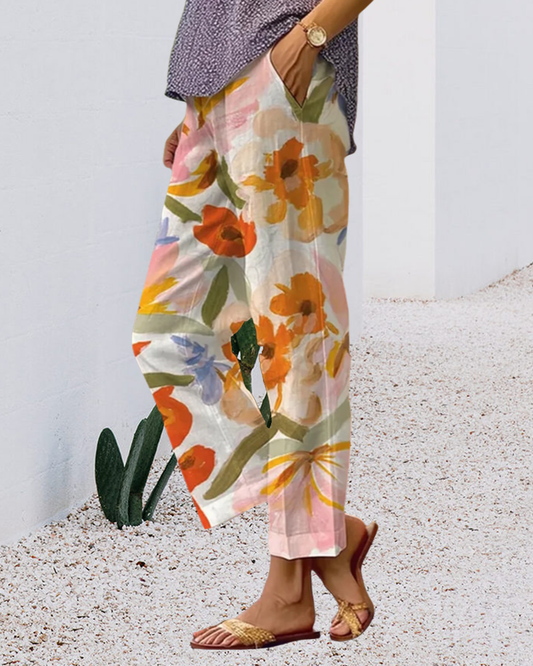Fargerike lommebukser med blomstertrykk