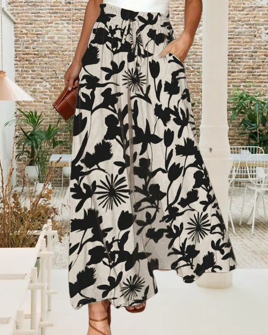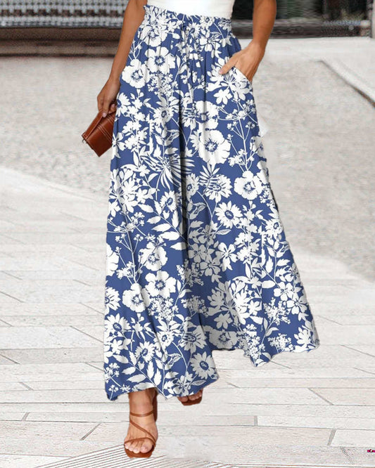 Bukser med brede ben og lommer med blomstertrykk