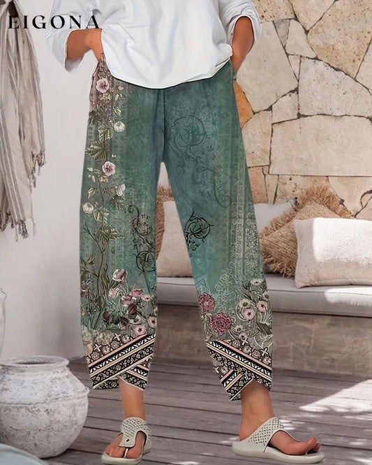 Uformelle bukser med vintage blomstertrykk