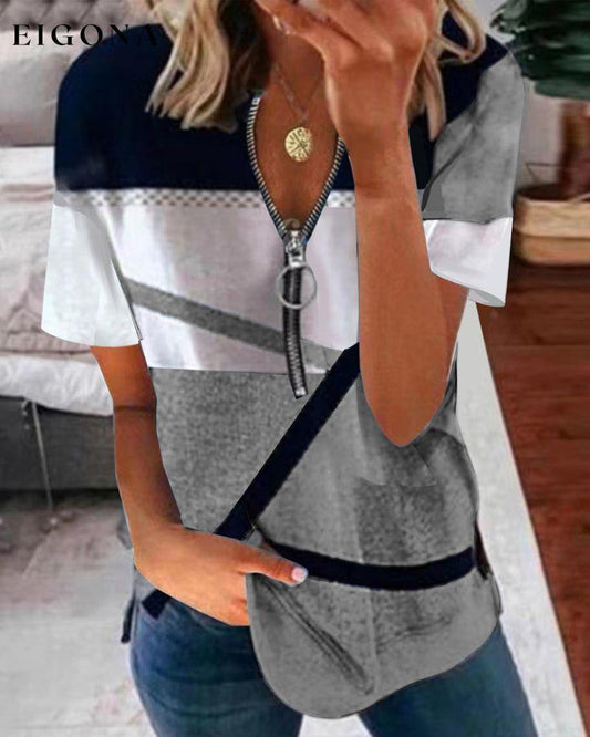 Lässiges Colorblock-T-Shirt mit V-Ausschnitt
