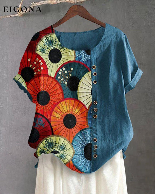 【100 % bomull】 T-skjorte med blomstertrykk tilfeldig