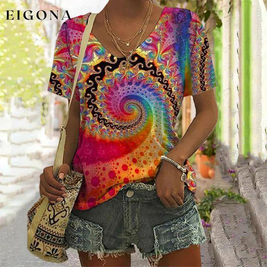 T-skjorte i vestlig etnisk stil for kvinner med V-hals