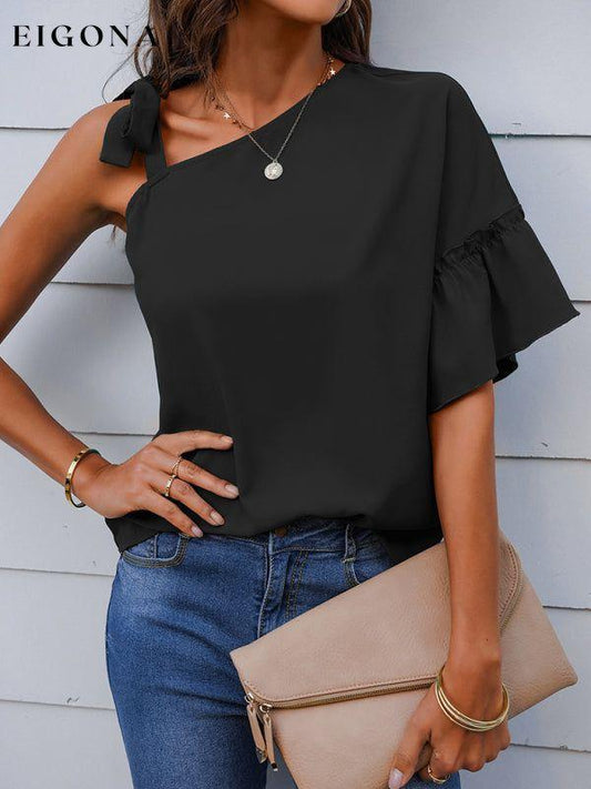 Dame mote diagonal krage Ruffle Sleeve Chiffon Topp