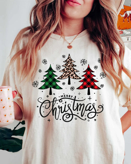 T-Shirt mit Rundhalsausschnitt und Weihnachtsbaum-Schriftzug-Print