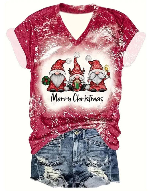 Kurzärmliges T-Shirt mit weihnachtlichem Cartoon-Charakter-Aufdruck