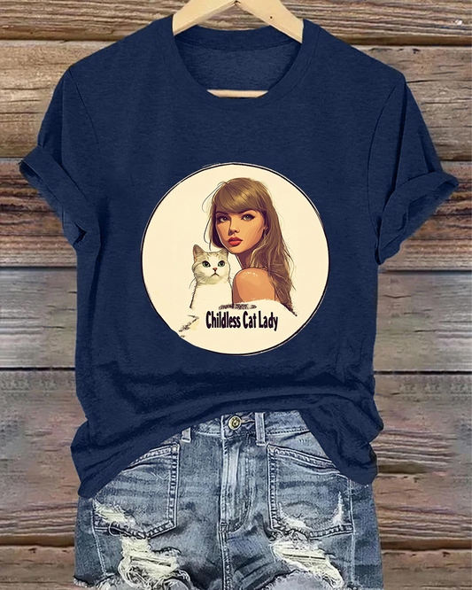 T-Shirt mit „Childless Cat Lady“-Aufdruck