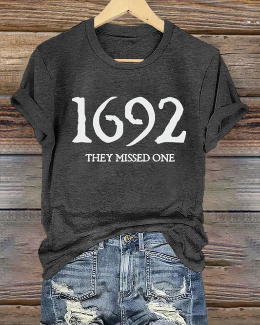 Damen T-Shirt mit Aufdruck „They Missed One Salem Witch“ von 1692