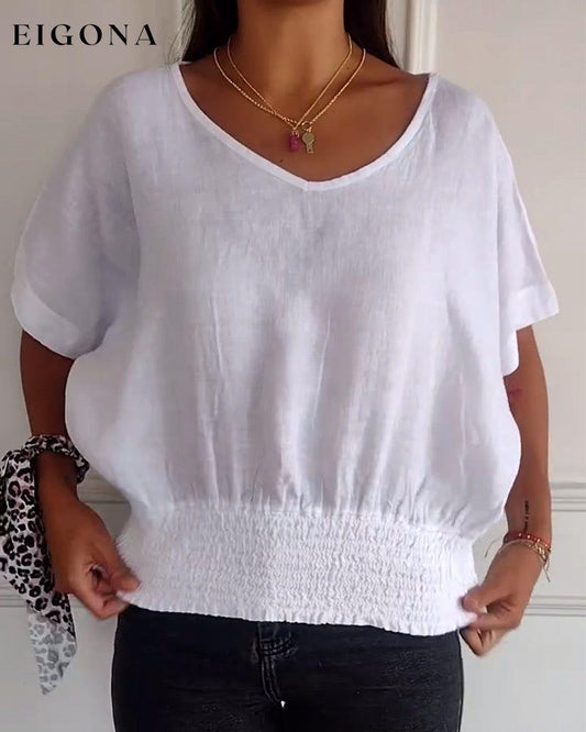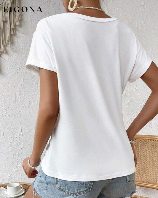 Enkel ensfarget V-hals T-skjorte med halv ermer