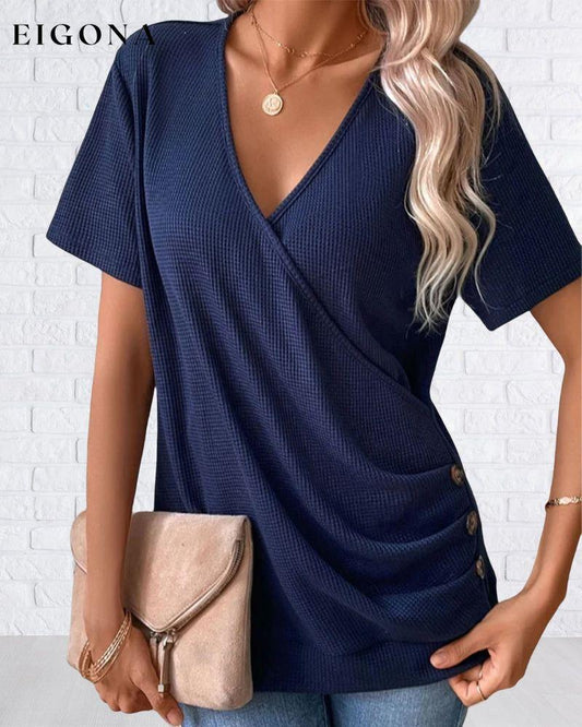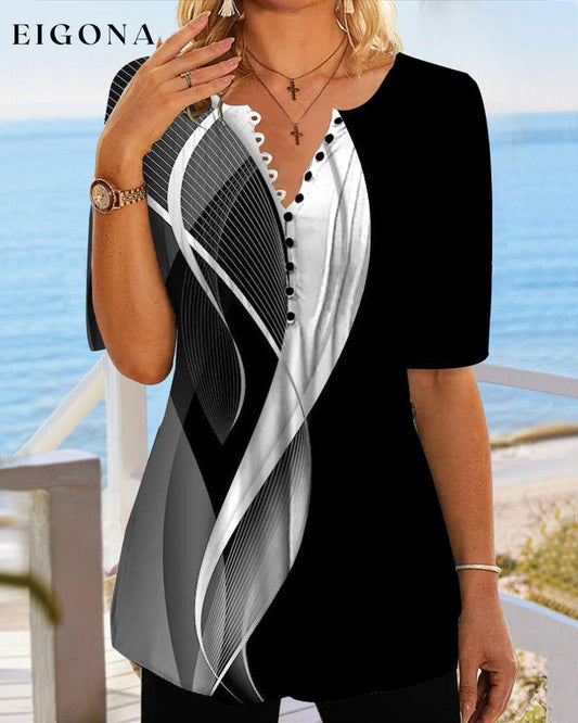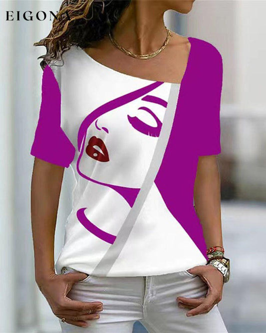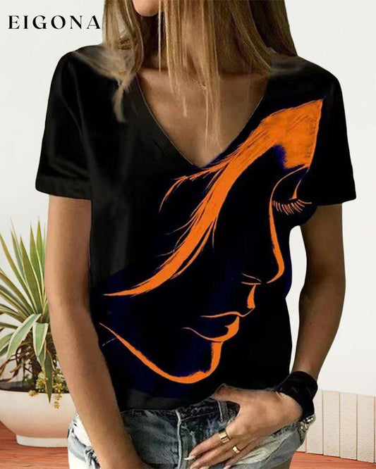 Kortermet t-skjorte med V-hals med ansiktstrykk