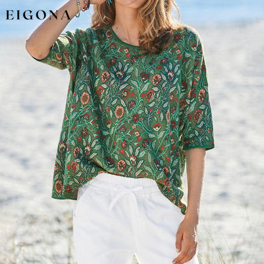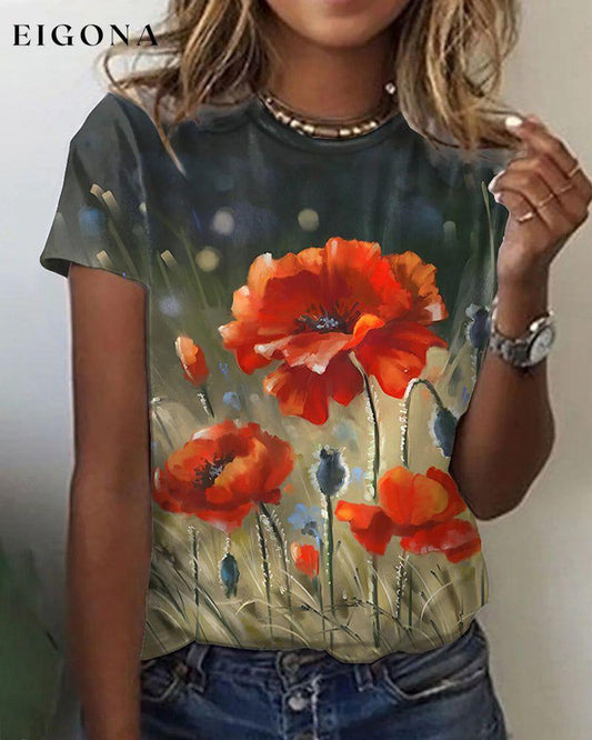 Kortermet t-skjorte med rund hals med blomstertrykk
