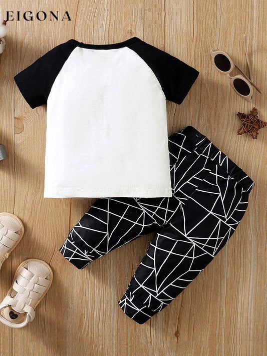 Raglanermet T-skjorte med rund hals og trykte buksersett