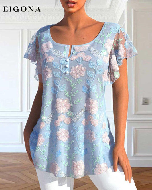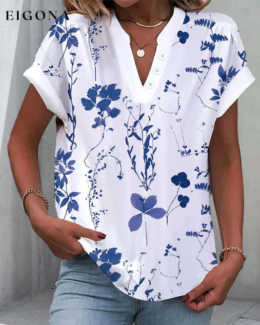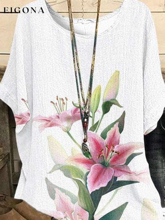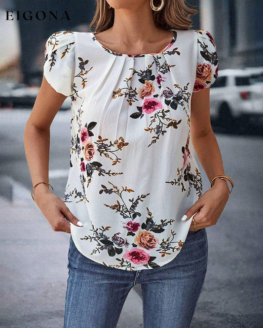 Kortermet t-skjorte med rund hals med blomstertrykk