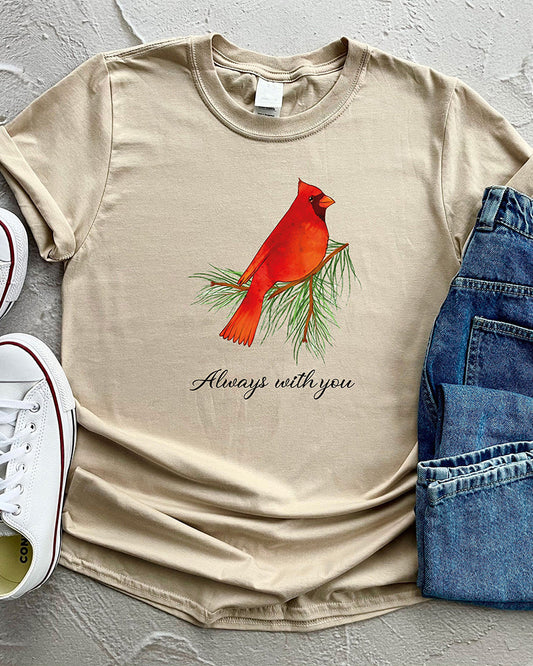 Lässiges T-Shirt mit Kardinalvogel-Print „Always With You“
