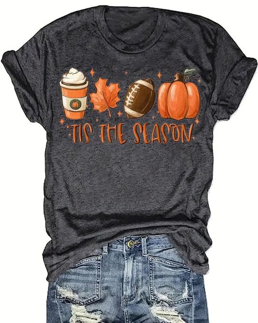 Lässiges Kurzarm-T-Shirt mit Schneeflocken-Grinch-Print