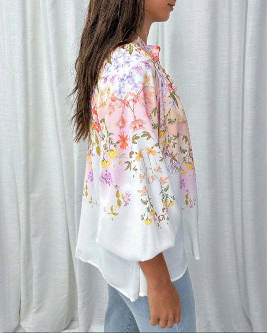 Bluse med knapper med lanterne med blomstertrykk