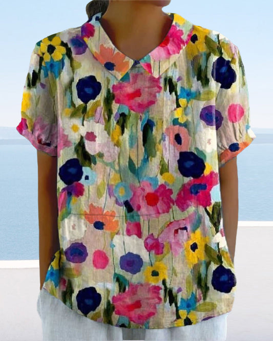 Casual bluse med jakkeslag med blomstertrykk