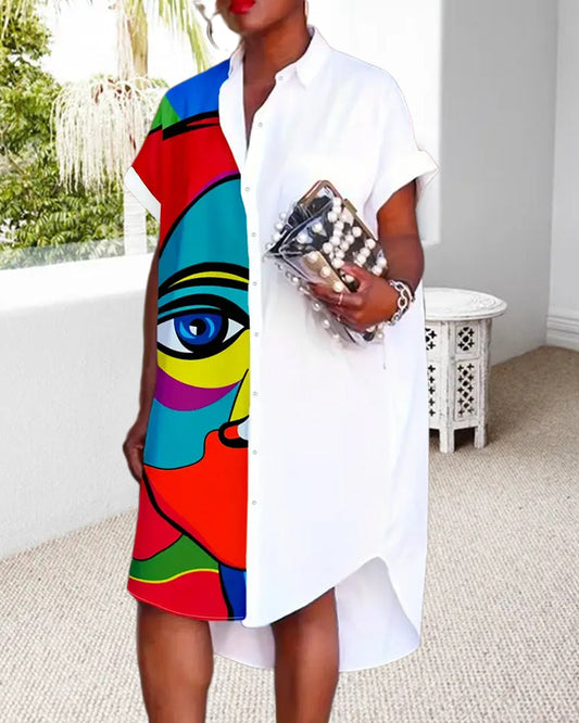 Uformelt printet patchwork plissert kjole