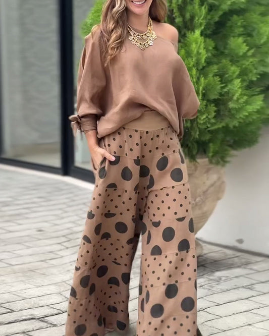 Todelt dress med prikker med én skulder